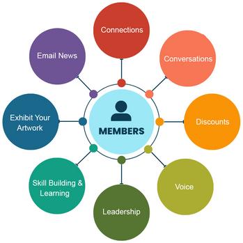 Membership is available to both artists and those wishing to provide support for the guild and its mission. Guild membership has various levels of contribution and benefits: